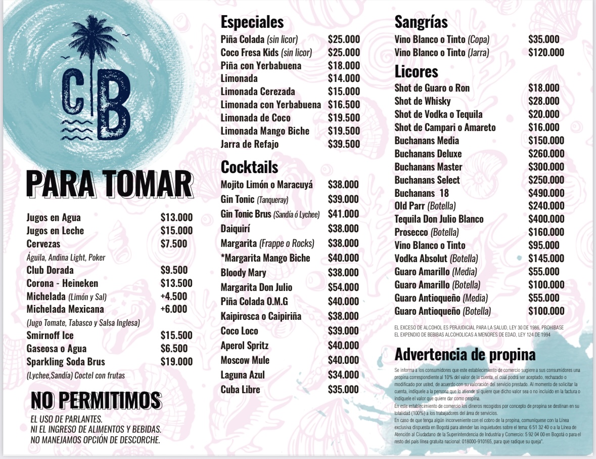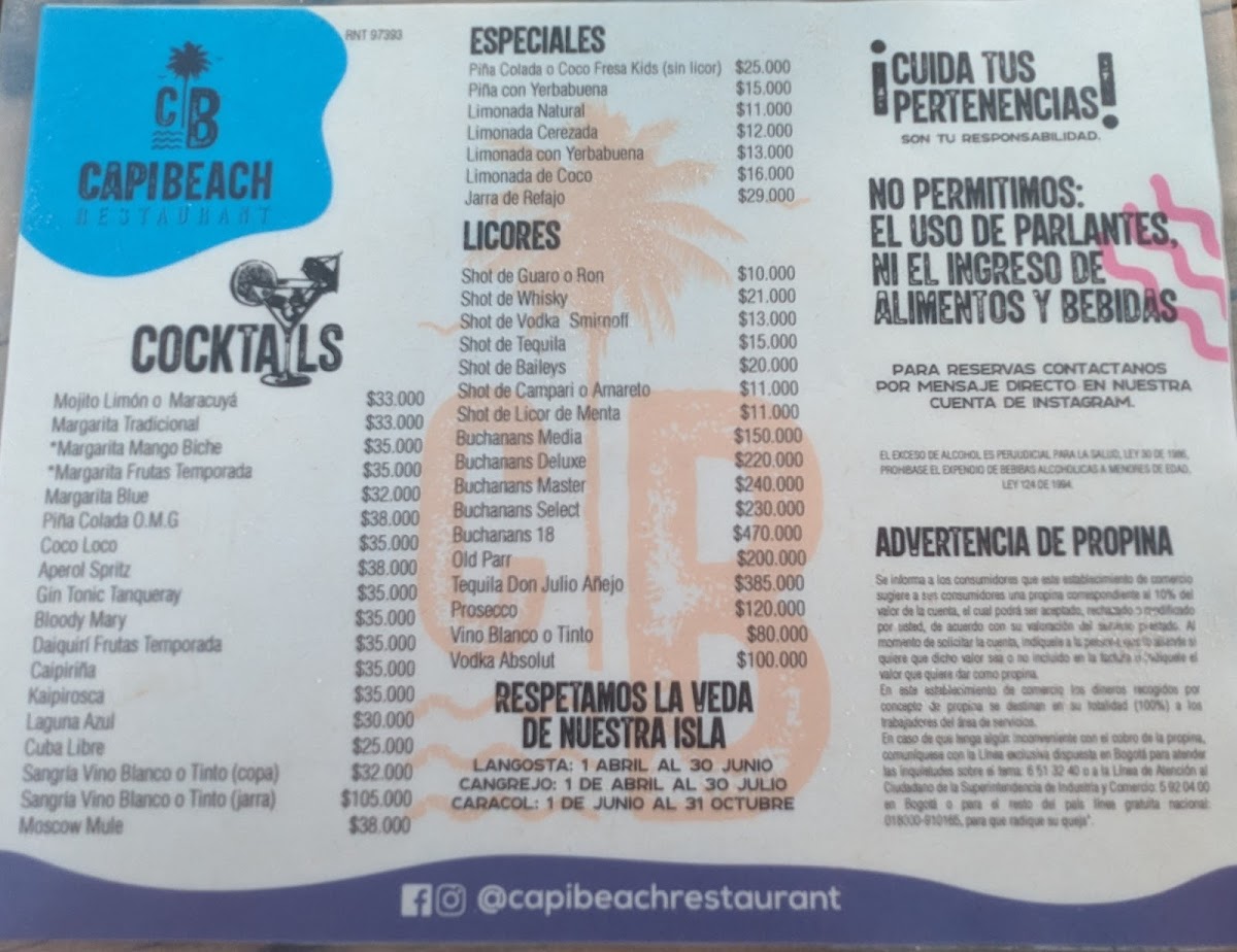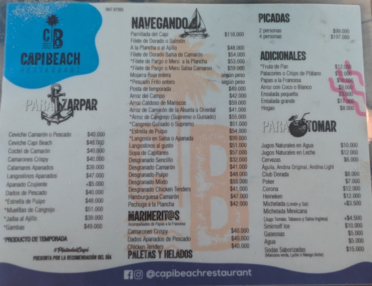 Capi Beach Restaurant en San Andres Menu
